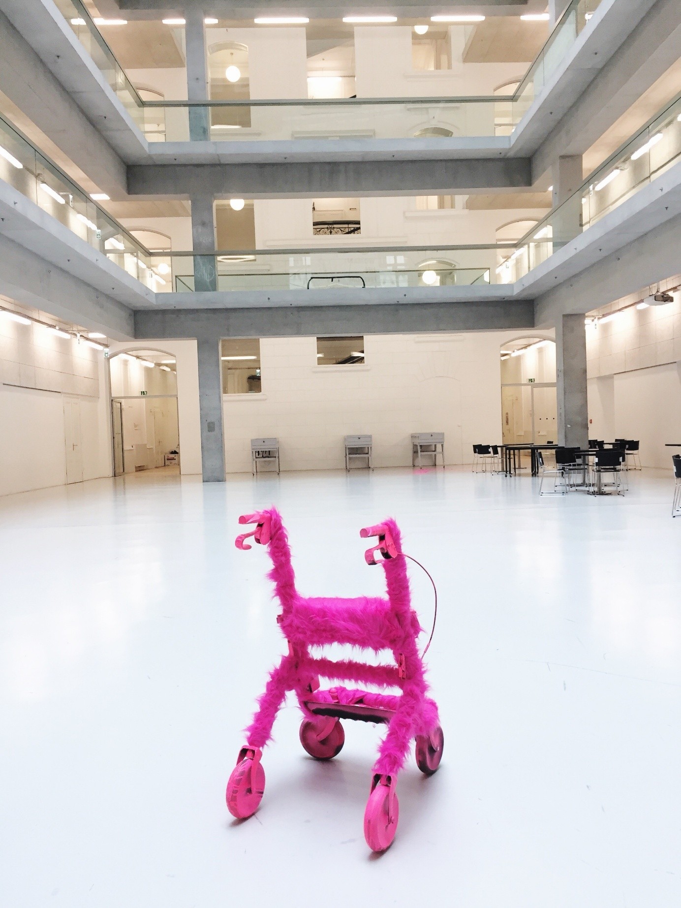 Rollatoren, die in Form eines spekulativen Designs Aufmerksam machen sollen, dass ältere Menschen und Menschen mit Demenz