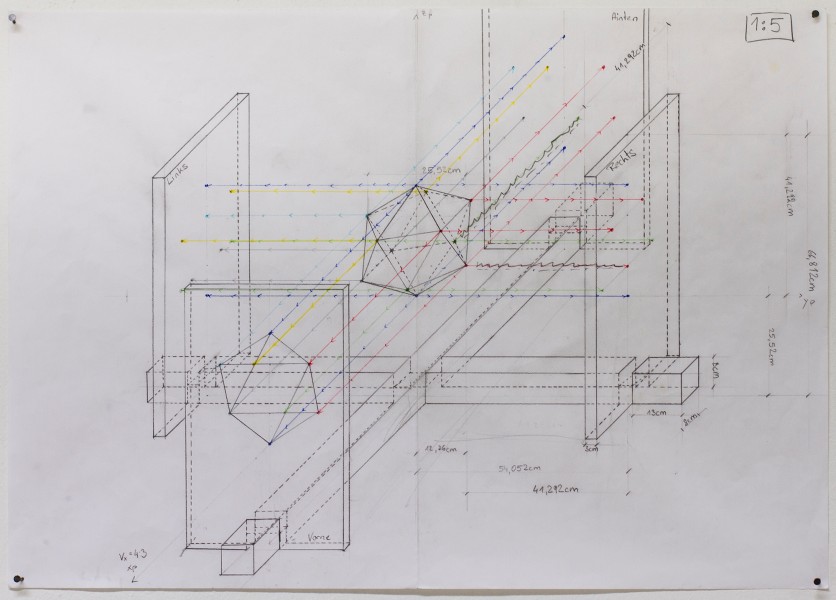 Peter Paulhart; Projektor; 2014; MDF-Platten, Gummischnur, Nylonschnur, Bleistift; 111,9 x 66,8 x 111,9 cmPeter Paulhart; Projektor; 2014; MDF-Platten, Gummischnur, Nylonschnur, Bleistift; 111,9 x 66,8 x 111,9 cmPeter Paulhart; Projektor; 2014; MDF-Platten, Gummischnur, Nylonschnur, Bleistift; 111,9 x 66,8 x 111,9 cm